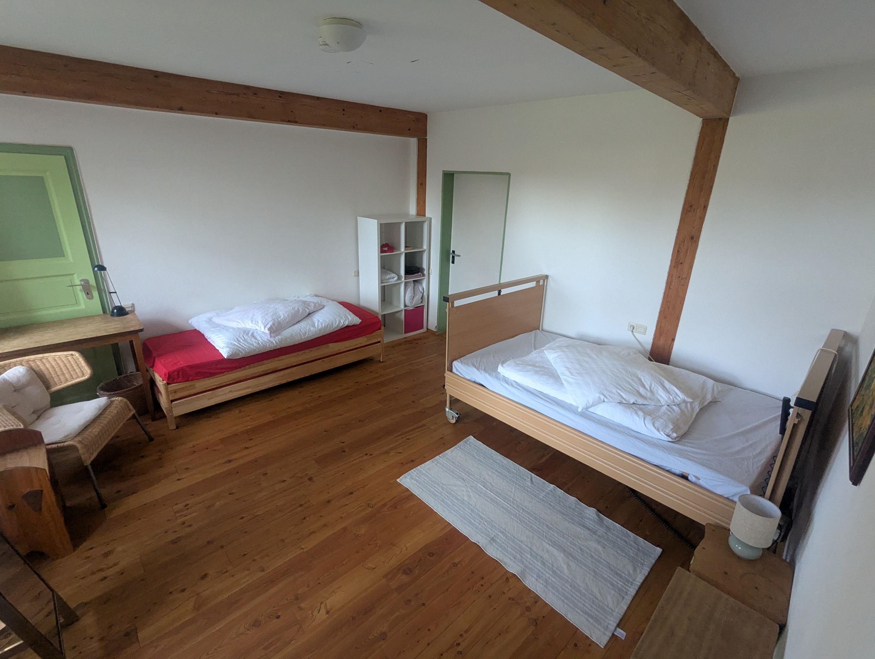 Und es gibt ein Pflege·bett in diesem Zimmer.
